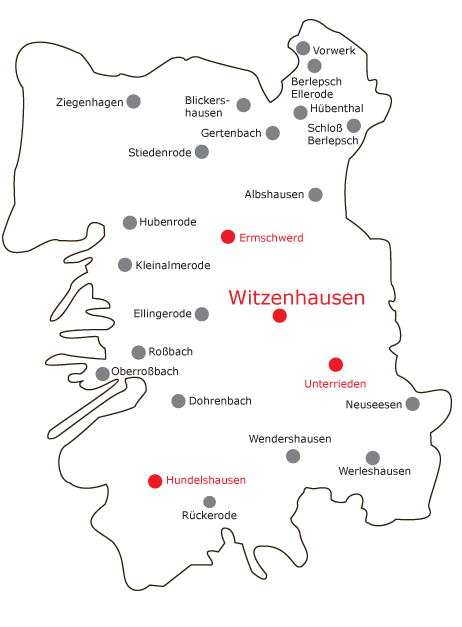 Das Versorgungsgebiet der Stadtwerke Witzenhausen umfasst die Kernstadt Witzenhausen und all seine Ortsteile. Jedoch muss zwischen den verschiedenen Spannungsebenen unterschieden werden.
